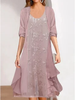Women’s Two Piece Dress Set Chiffon Dress Print Dress Formal Outdoor Fashion Mature Print Midi Dress Crew Neck Half Sleeve Floral Loose Fit Pink Blue Green Summer Spring S M L XL XXL