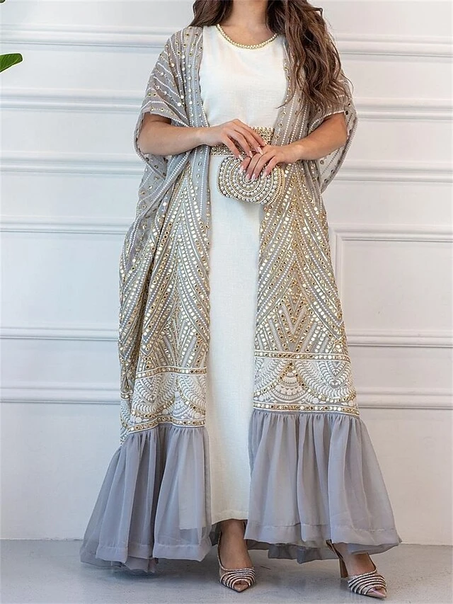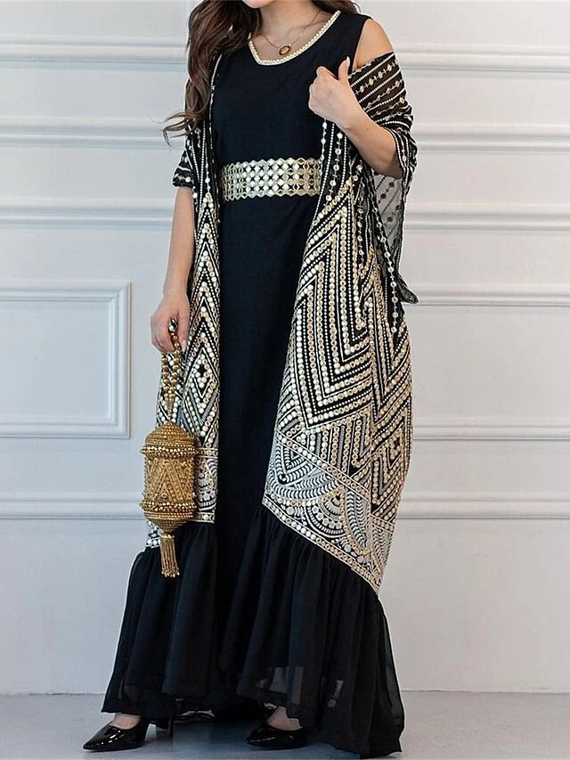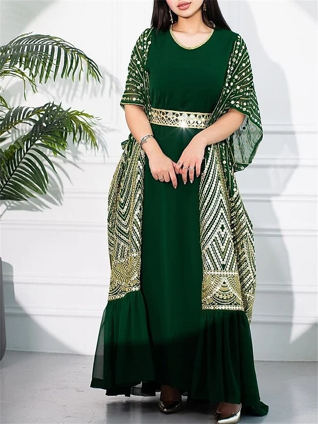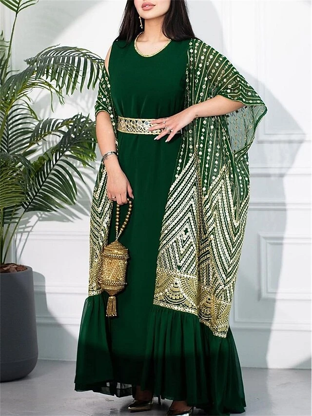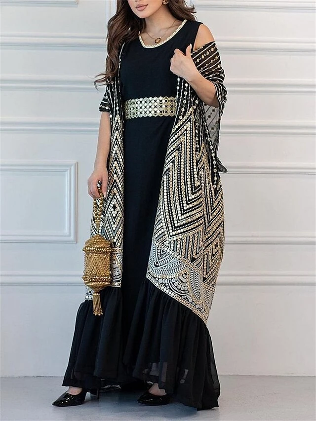 Women’s Two Piece Dress Set Party Dress Sheath Dress Party Cocktail Party Fashion Party Lace Up Ruched Long Dress Maxi Dress Crew Neck Short Sleeve Print Loose Fit Black White Green Fall Winter S M L