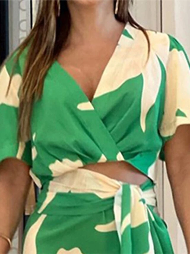 Women’s Two Piece Dress Set Sheath Dress Print Dress Outdoor Holiday Casual Ruched Print Maxi Dress V Neck Half Sleeve Floral Regular Fit Green Summer Spring S M L XL XXL