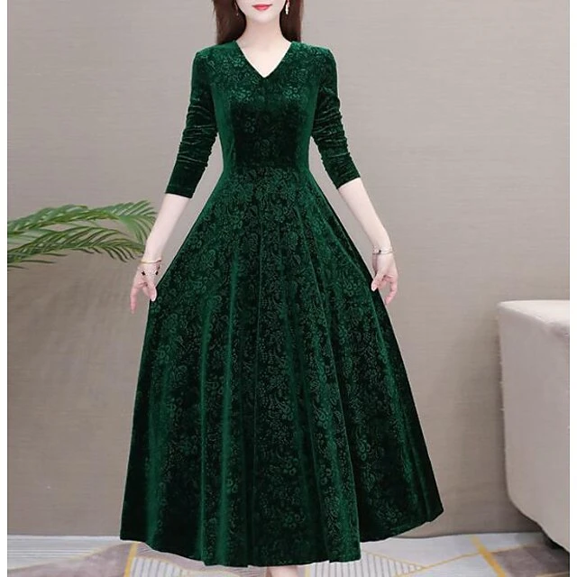 Women’s Velvet Dress Homecoming Dress Empire Waist Dresses Long Dress Maxi Dress Black Wine Blue Long Sleeve Pure Color Ruched Spring Fall Winter V Neck Stylish Winter Dress Evening Party Wedding