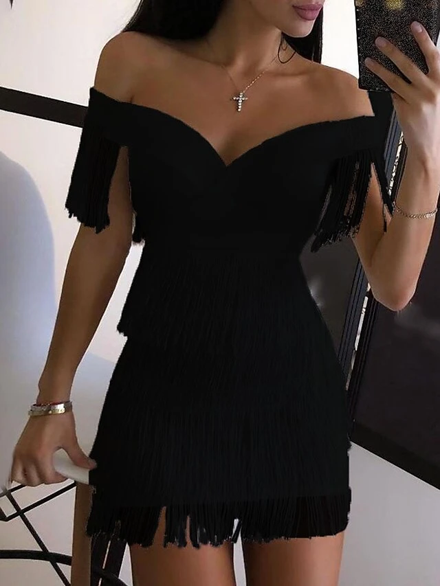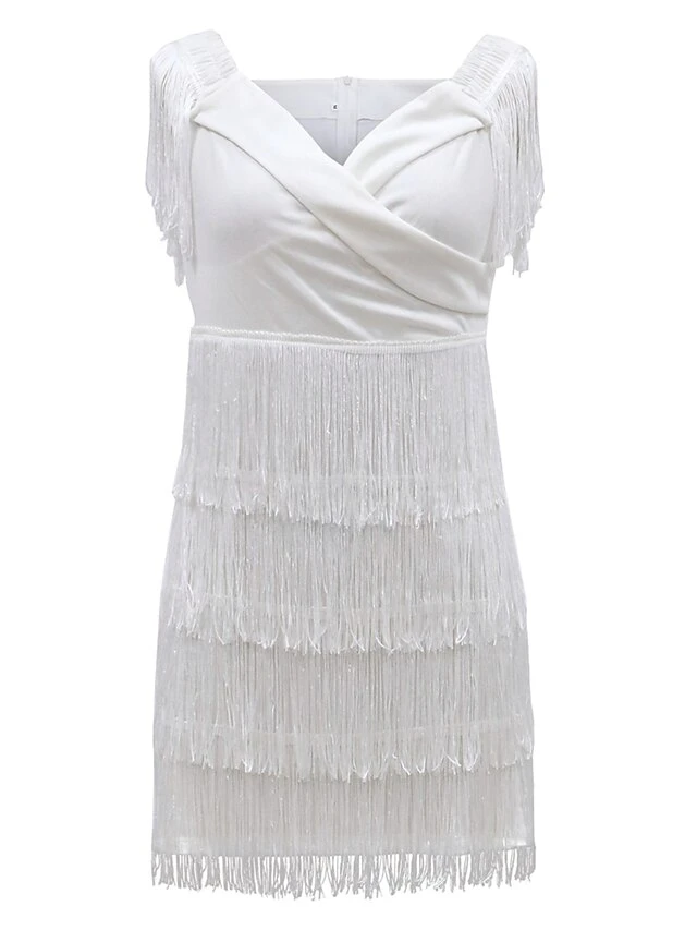 Women‘s Wedding Guest Dress Party Dress Fringe Dress Homecoming Dress Mini Dress Black White Sleeveless Pure Color Tassel Fringe Fall Spring Summer V Neck Fashion Birthday 2023 S M L XL