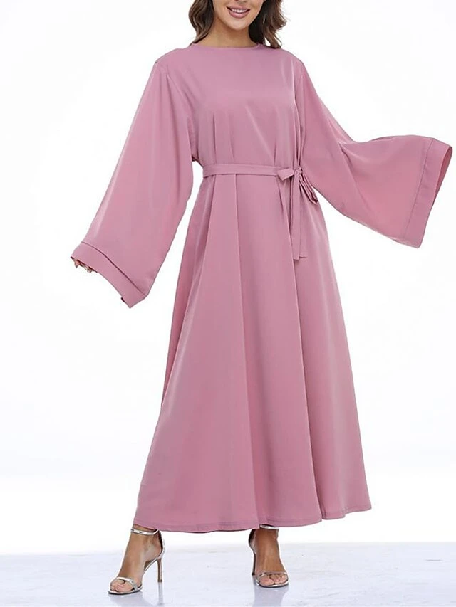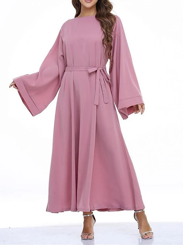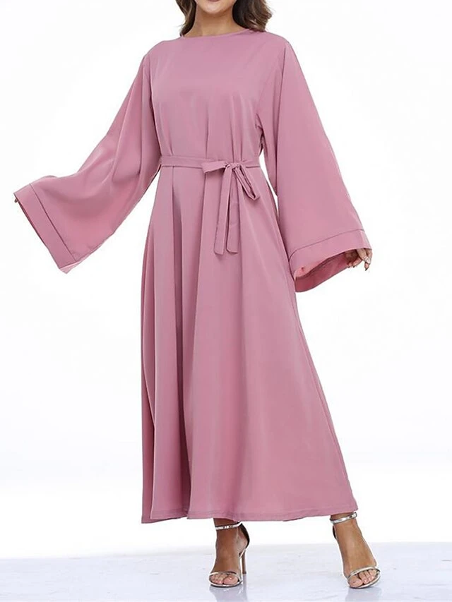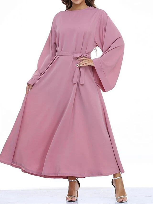 Women’s Work Dress Black Dress Semi Formal Dress Fashion Long Dress Maxi Dress Lace Up Crew Neck Long Sleeve Plain Regular Fit Black Pink Red Fall Winter S M L XL XXL