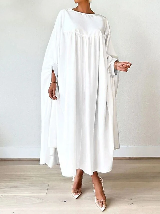 Women’s Work Dress Black Dress White Dress Fashion Long Dress Maxi Dress Ruched Split Crew Neck Long Sleeve Plain Loose Fit Black White Yellow Fall S M L XL XXL