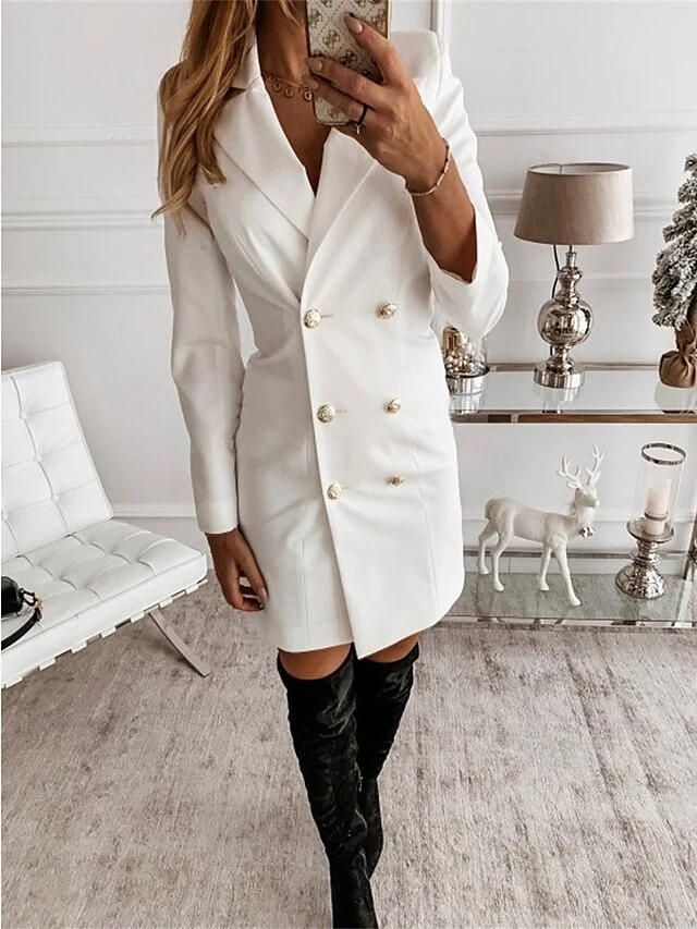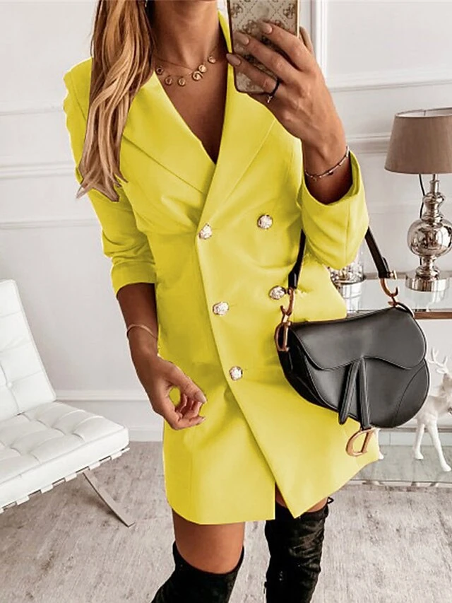 Women’s Work Dress Blazer Dress Sheath Dress Fashion Mini Dress Button Shirt Collar Long Sleeve Plain Loose Fit Black White Yellow Fall Winter S M L XL XXL