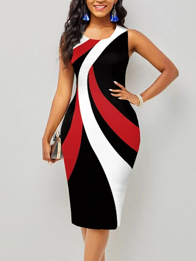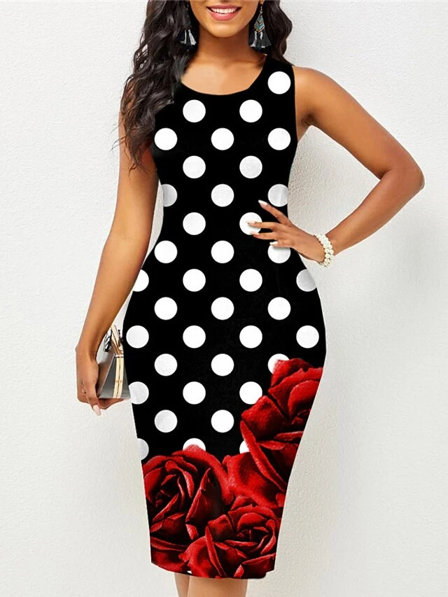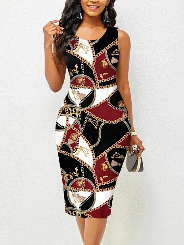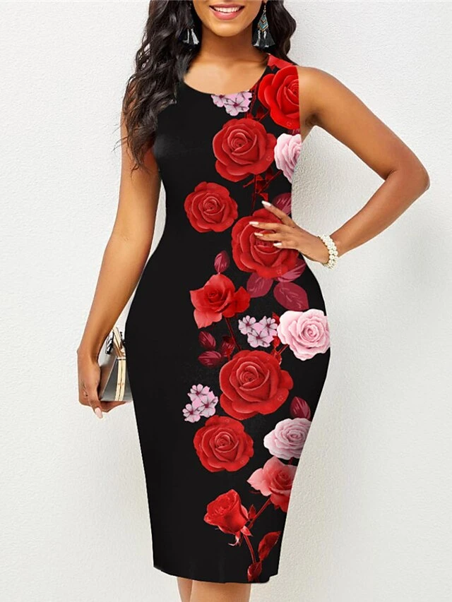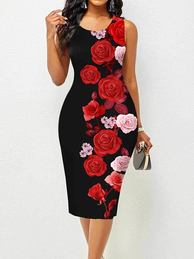 Women’s Work Dress Bodycon Sheath Dress Midi Dress Black Wine Red Sleeveless Floral Print Summer Spring Crew Neck Fashion Summer Dress 2023 S M L XL XXL 3XL