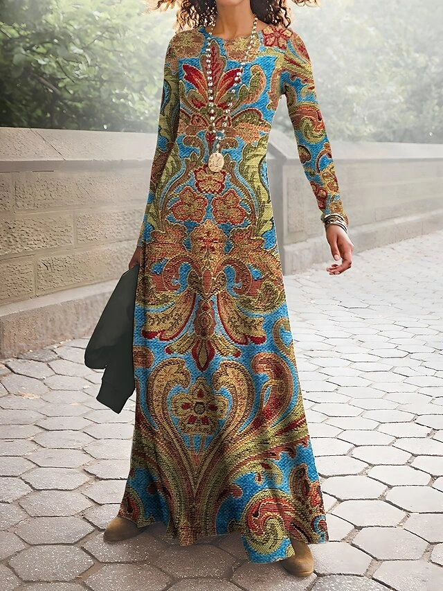 Women’s Work Dress Casual Dress A Line Dress Fashion Winter Dress Daily Long Dress Maxi Dress Print Crew Neck Long Sleeve Floral Regular Fit Black Blue Khaki Fall Winter S M L XL XXL