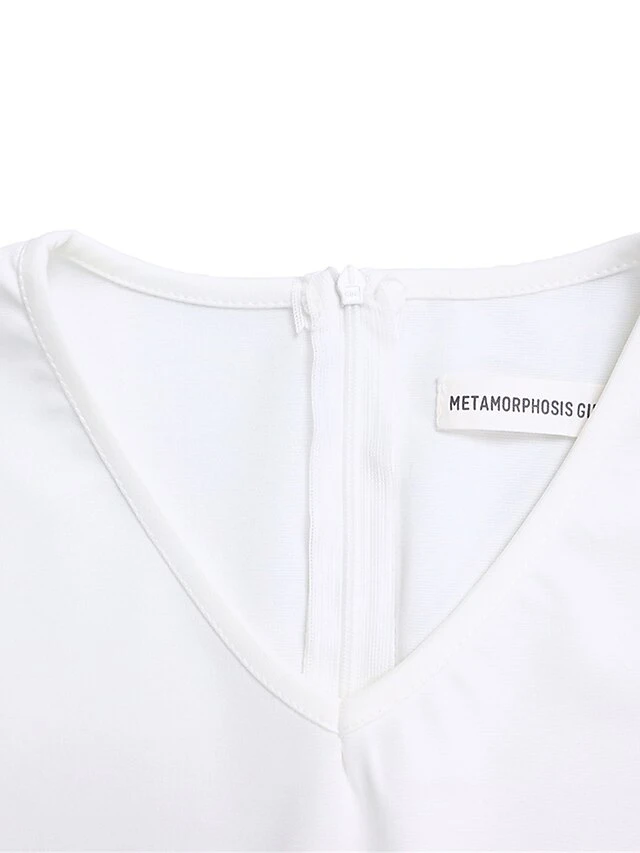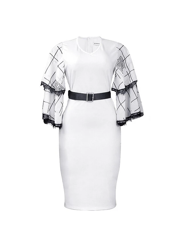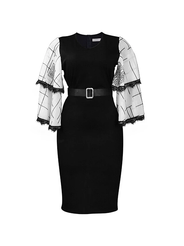 Women’s Work Dress Casual Dress Black Dress Fashion Office Daily Workfashion Midi Dress Lace Up Mesh V Neck 3/4 Length Sleeve Color Block Regular Fit Black White Red Fall Winter S M L XL XXL