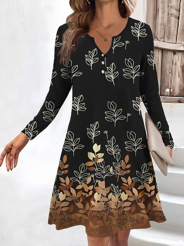 Women’s Work Dress Casual Dress Fashion Winter Dress Daily Mini Dress Button Print V Neck Long Sleeve Floral Regular Fit Yellow Navy Blue Blue Fall Winter S M L XL XXL