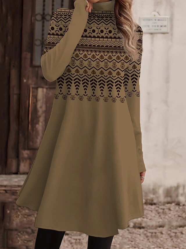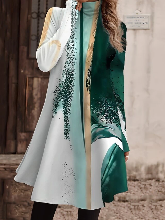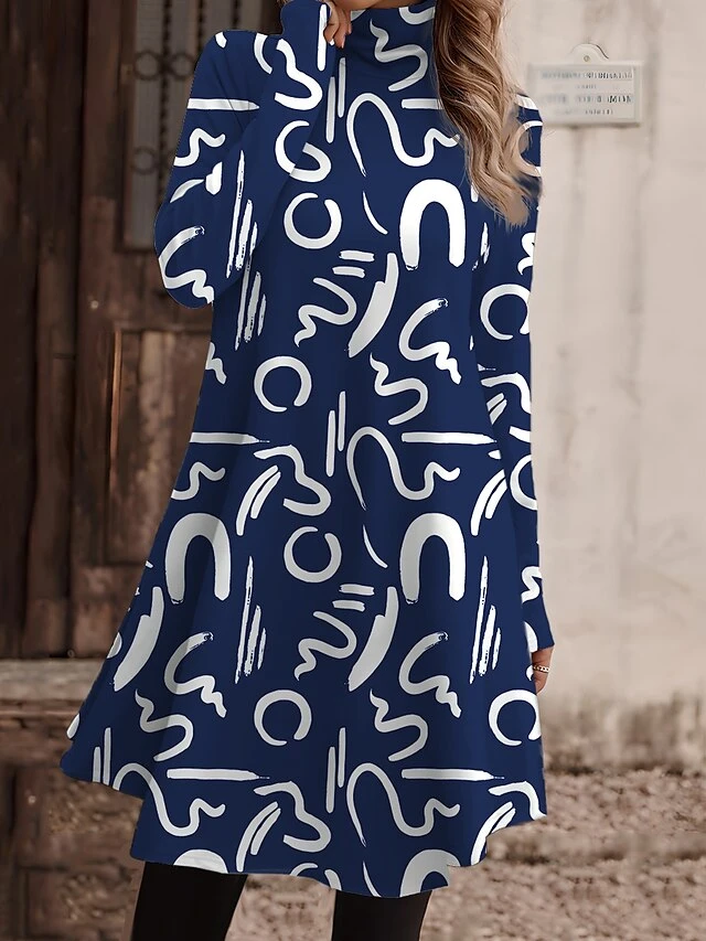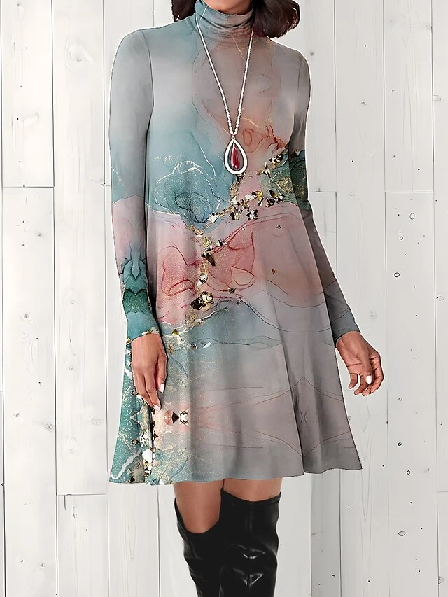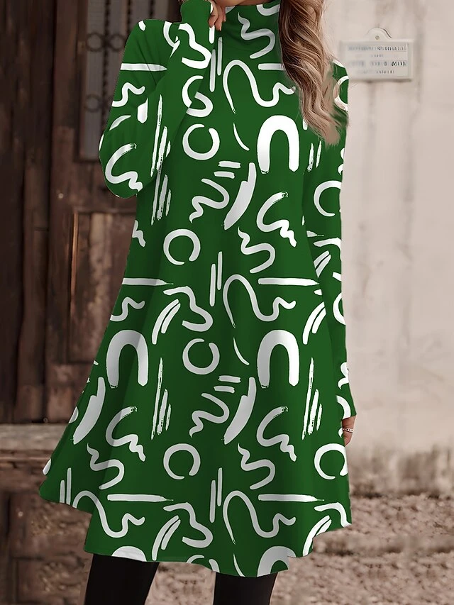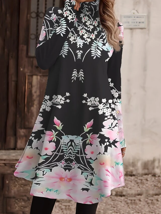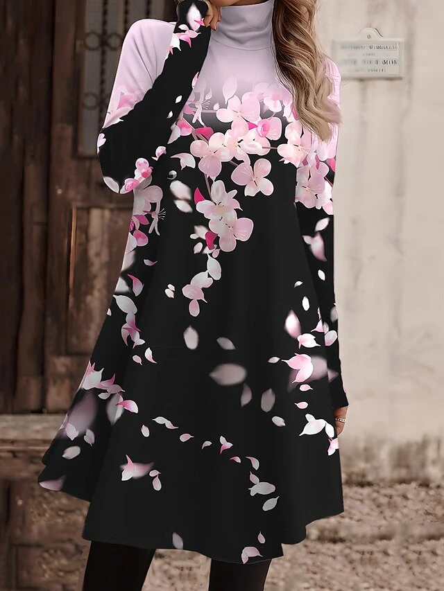 Women’s Work Dress Casual Dress Fashion Winter Dress Daily Mini Dress Print Turtleneck Long Sleeve Floral Letter Regular Fit Light Pink Black Light Green Fall Winter S M L XL XXL