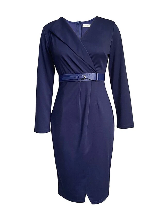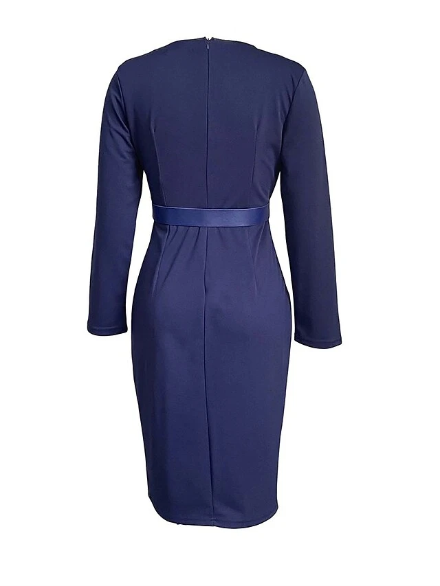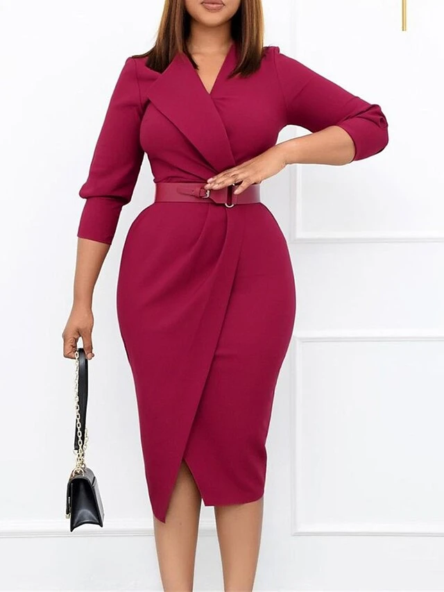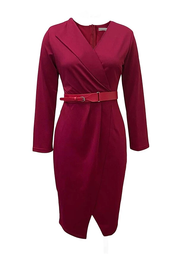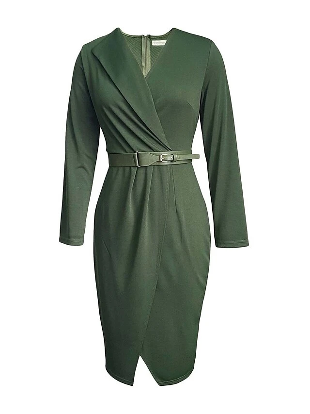 Women’s Work Dress Casual Dress Sheath Dress Fashion Office Daily Workfashion Midi Dress Lace Up Ruched V Neck Long Sleeve Plain Regular Fit Red Green Dark Blue Fall Winter S M L XL XXL
