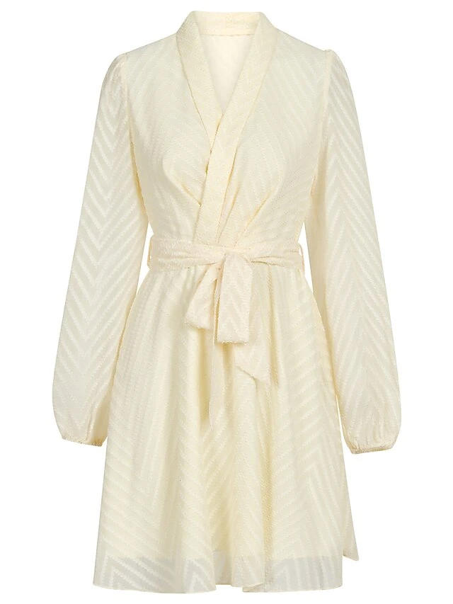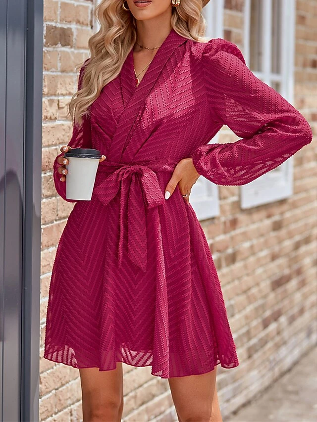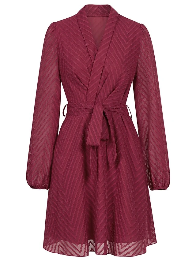 Women’s Work Dress Casual Dress Sheath Dress Fashion Office Daily Workfashion Mini Dress Lace Up Ruched V Neck Long Sleeve Plain Loose Fit Black Wine Apricot Fall Winter S M L XL