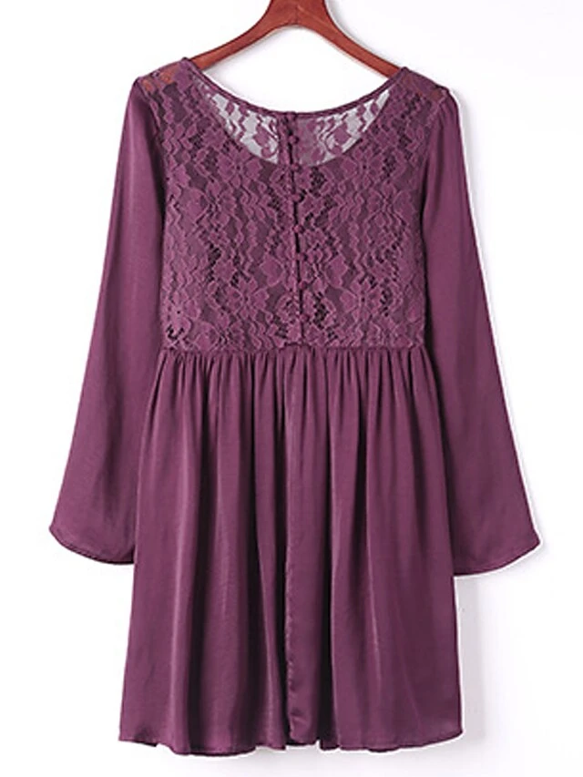 Women’s Work Dress Casual Dress Sheath Dress Fashion Winter Dress Daily Mini Dress Lace Ruched Crew Neck Long Sleeve Plain Regular Fit Purple Fall Winter S M L XL