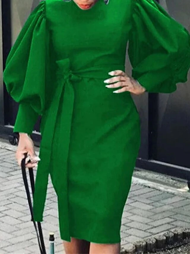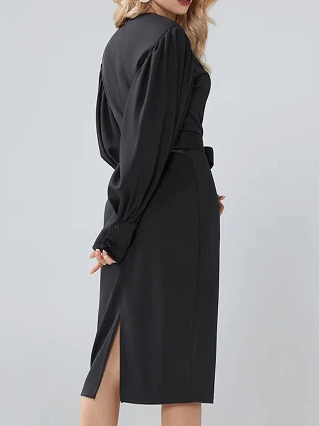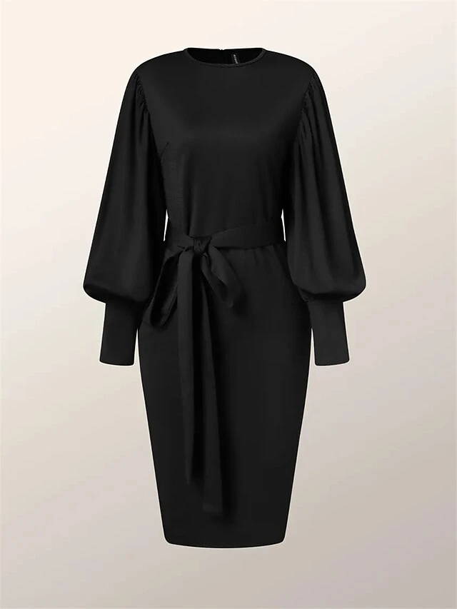 Women’s Work Dress Casual Dress Sheath Dress Fashion Winter Dress Office Daily Midi Dress Lace Up Ruched Crew Neck Long Sleeve Plain Regular Fit Black White Red Fall Winter S M L XL XXL