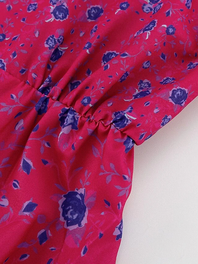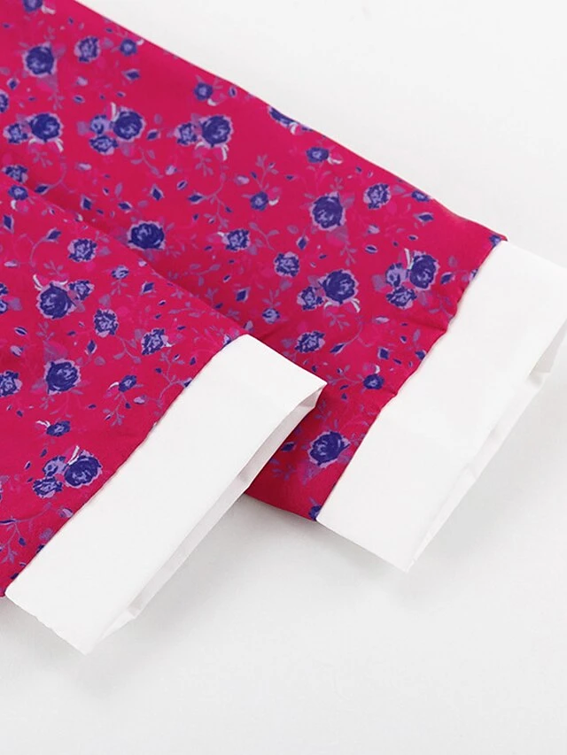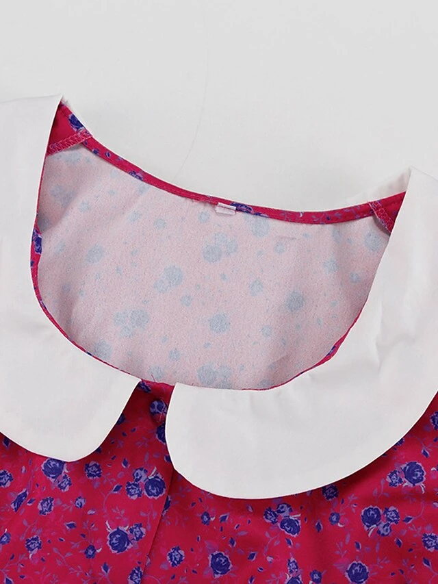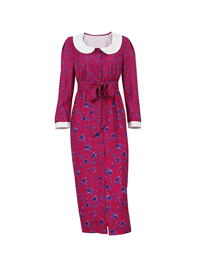 Women’s Work Dress Casual Dress Shift Dress Fashion Winter Dress Daily Midi Dress Lace Up Patchwork Shirt Collar Long Sleeve Floral Color Block Regular Fit Pink Red Fall Winter S M L