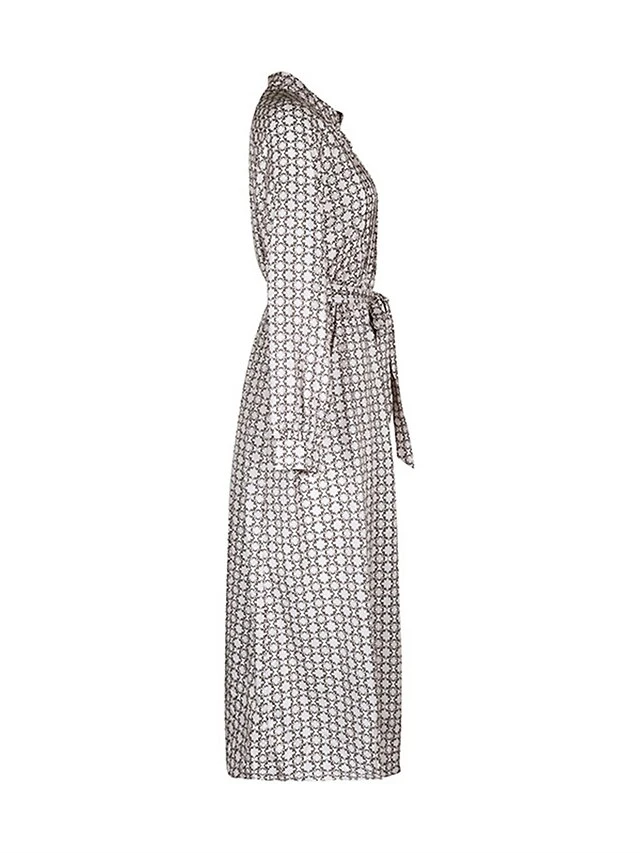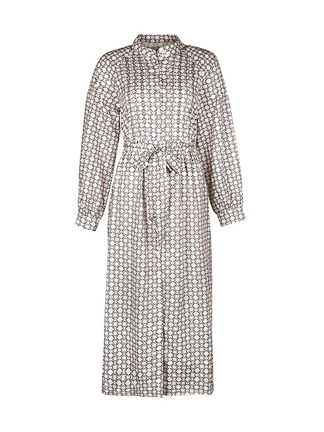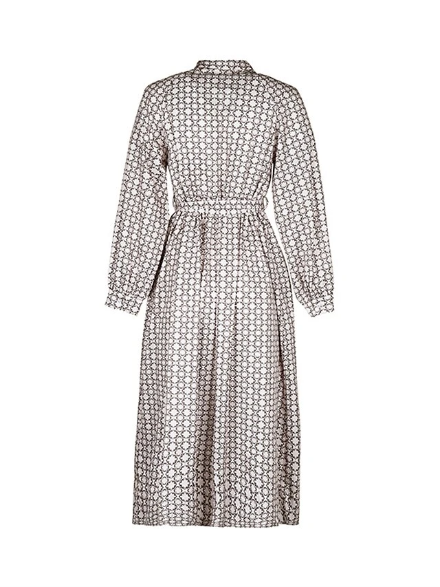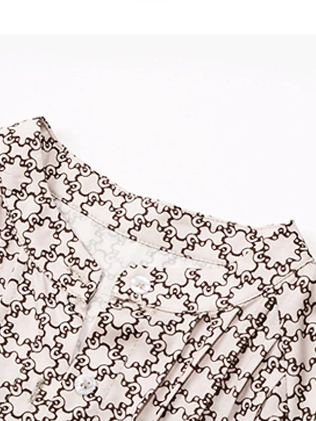 Women’s Work Dress Casual Dress Swing Dress Fashion Office Daily Workfashion Midi Dress Lace Up Button Shirt Collar Long Sleeve Print Loose Fit Apricot Fall Winter S M L XL