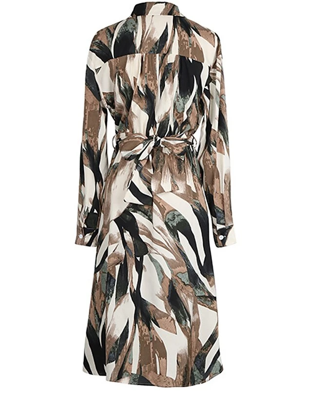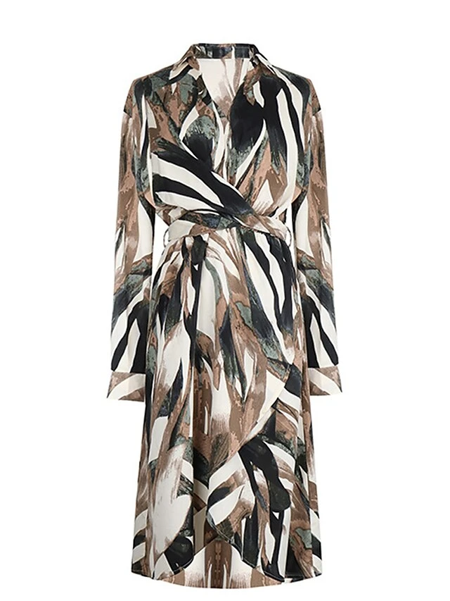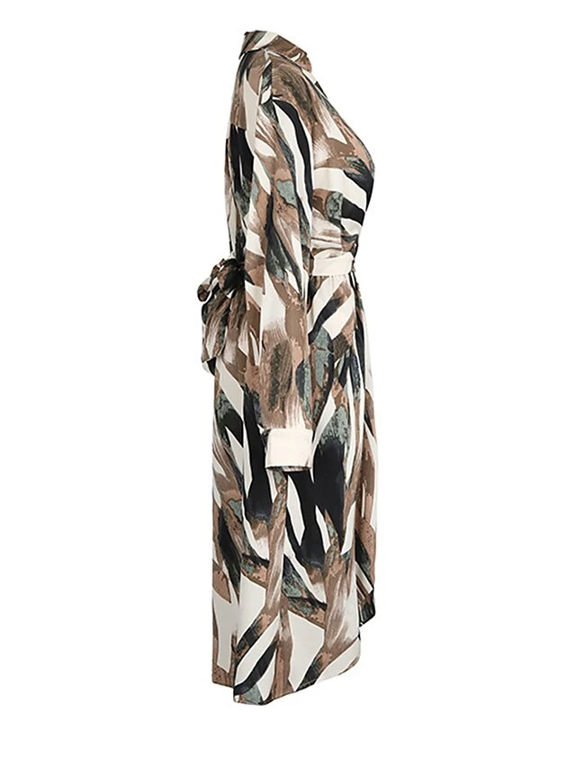 Women’s Work Dress Casual Dress Swing Dress Fashion Office Daily Workfashion Midi Dress Lace Up Split V Neck Long Sleeve Print Regular Fit Brown Fall Winter S M L XL