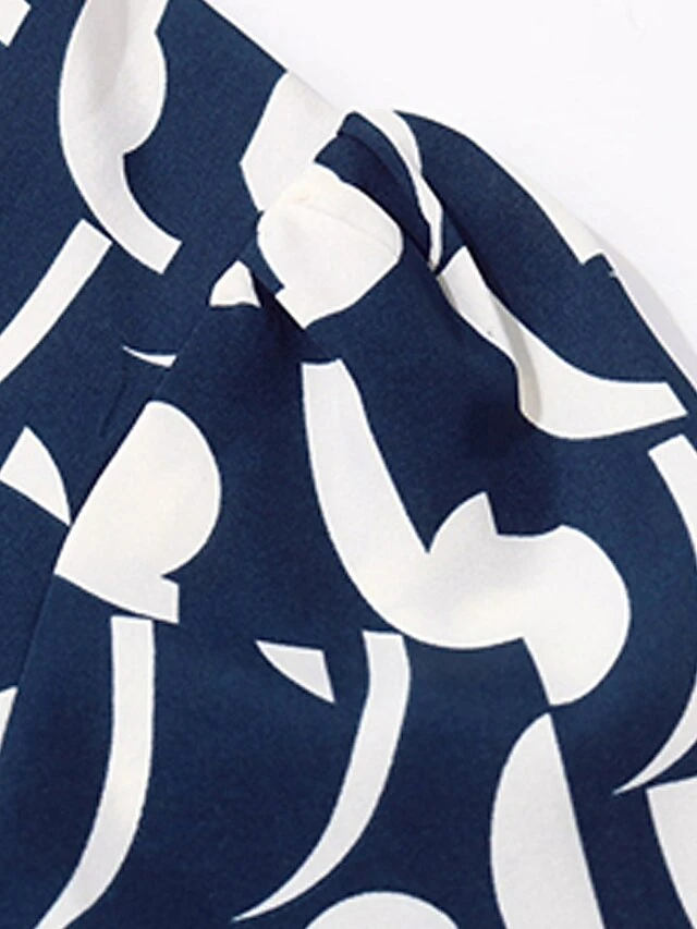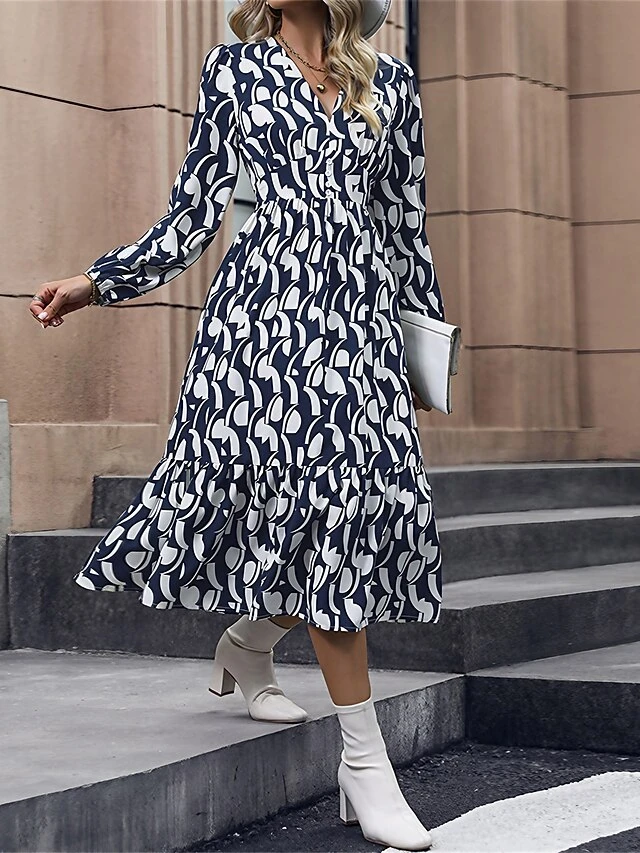 Women’s Work Dress Casual Dress Swing Dress Fashion Office Daily Workfashion Midi Dress Ruched Print V Neck Long Sleeve Print Loose Fit Blue Fall Winter S M L XL
