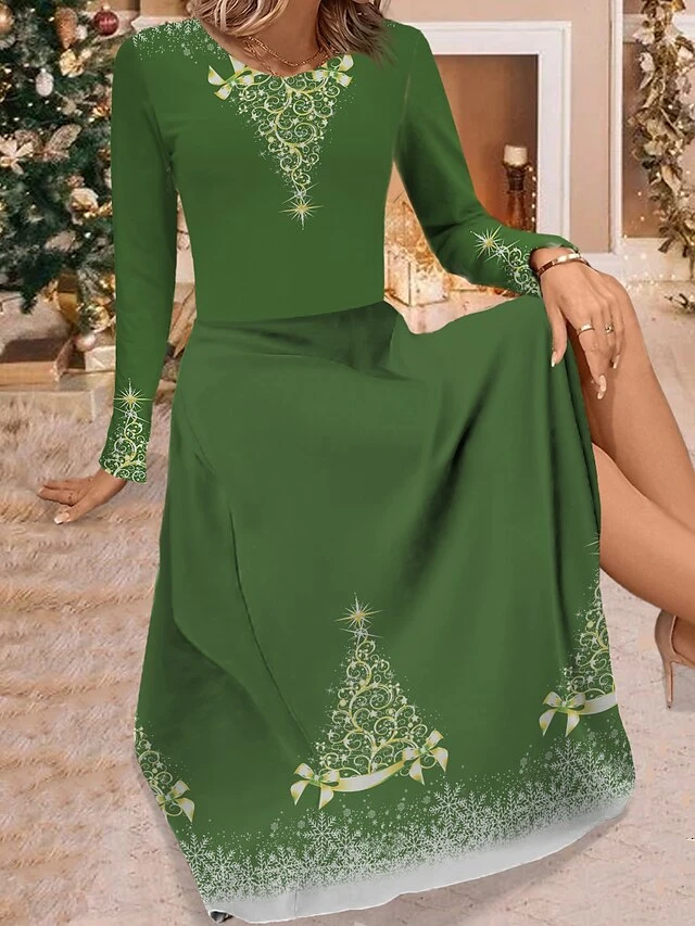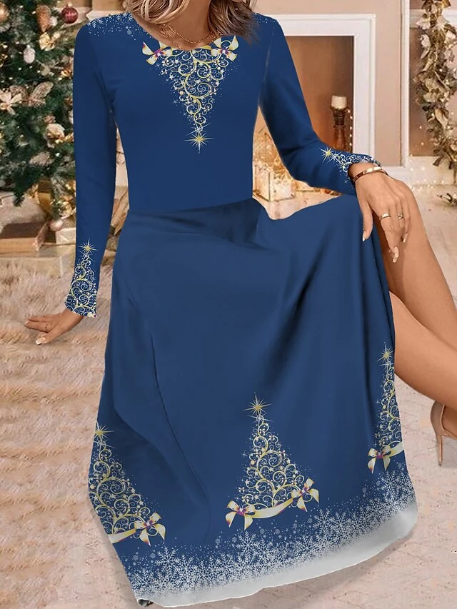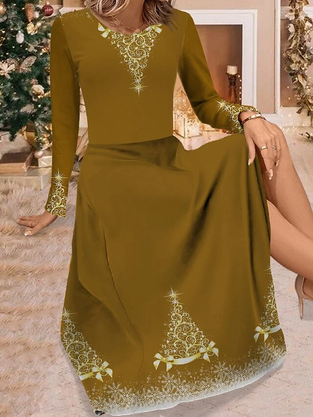 Women’s Work Dress Casual Dress Swing Dress Fashion Winter Dress Christmas Daily Midi Dress Print Crew Neck Long Sleeve Christmas Tree Regular Fit Red Blue Brown Fall Winter S M L XL XXL