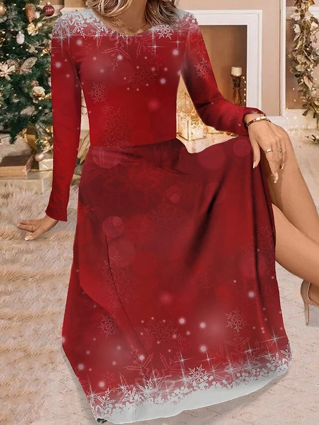 Women’s Work Dress Casual Dress Swing Dress Fashion Winter Dress Christmas Daily Midi Dress Print Crew Neck Long Sleeve Snowflake Ombre Regular Fit Wine Navy Blue Blue Fall Winter S M L XL XXL