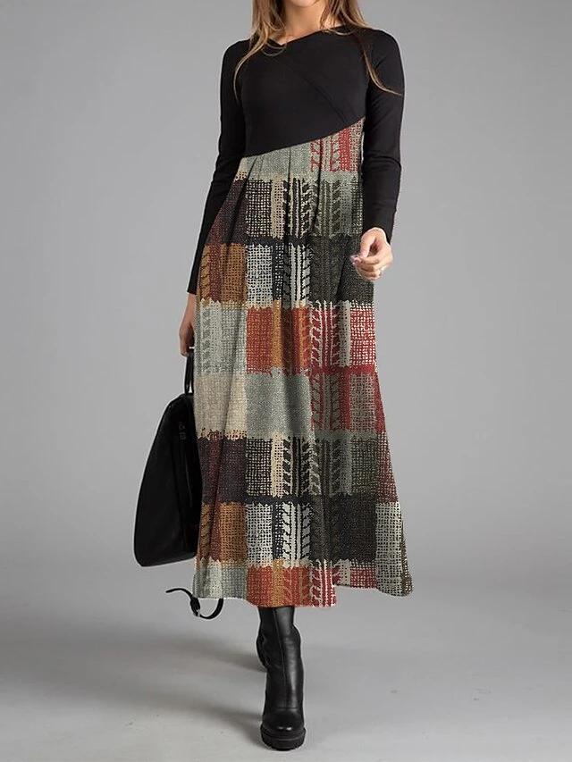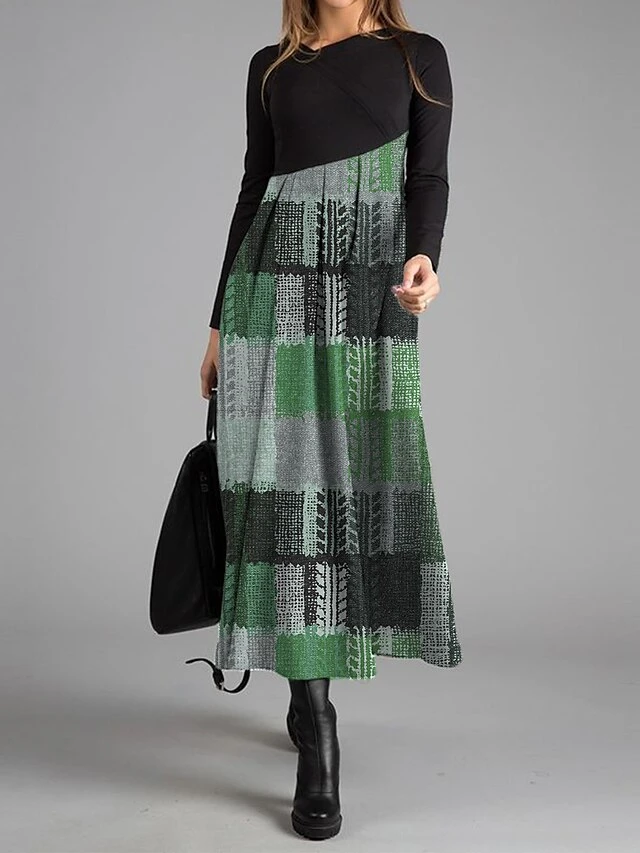 Women’s Work Dress Casual Dress Swing Dress Fashion Winter Dress Daily Long Dress Maxi Dress Button Print V Neck Long Sleeve Geometric Plaid Regular Fit Blue Brown Green Fall Winter S M L XL XXL