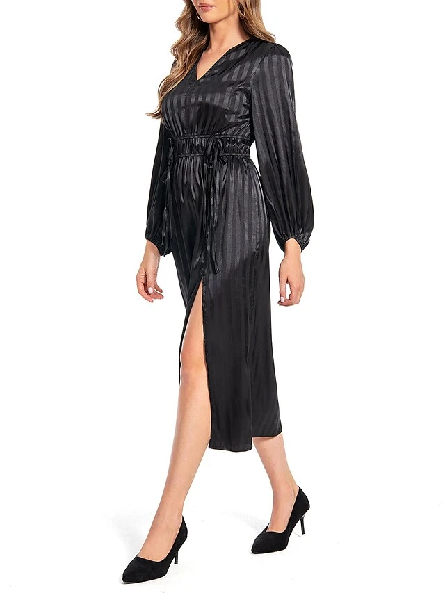 Women’s Work Dress Satin Dress Black Dress Fashion Midi Dress Split V Neck Long Sleeve Plain Loose Fit Black Fall Winter S M L XL XXL