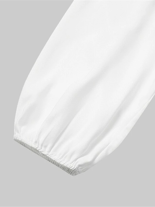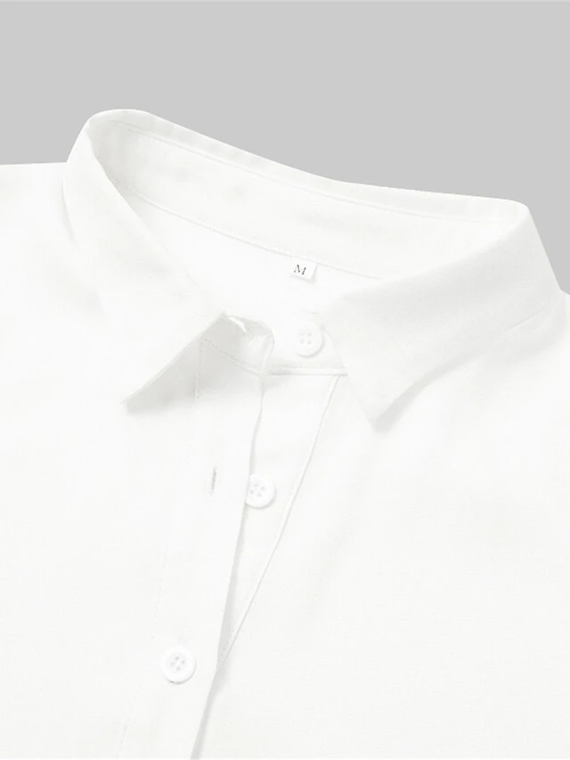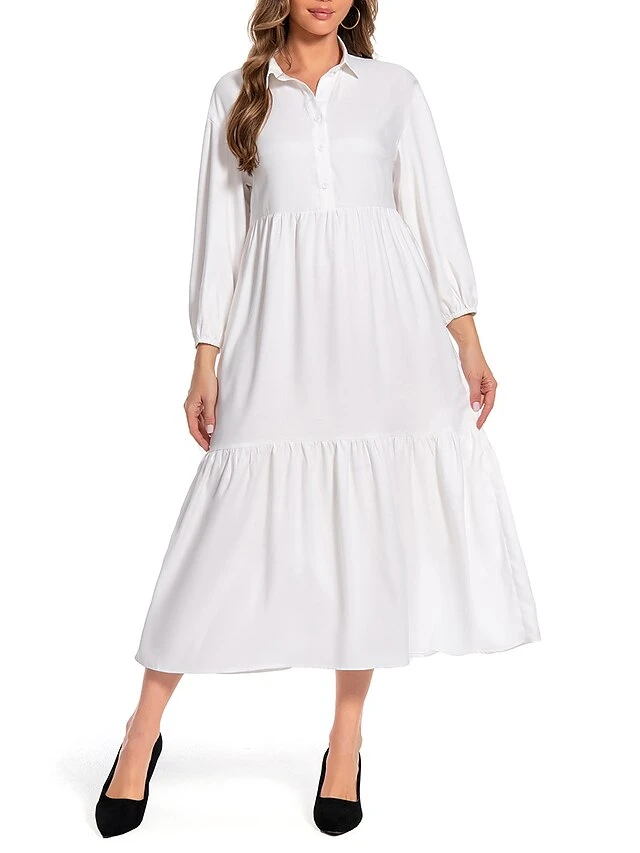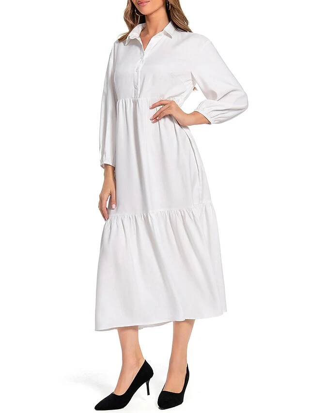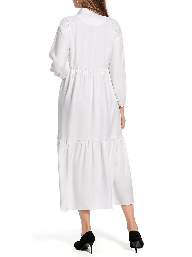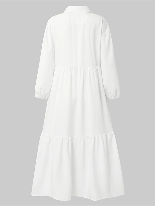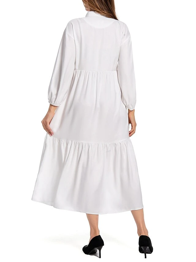 Women’s Work Dress Satin Dress Swing Dress Fashion Midi Dress Ruffle Button Shirt Collar Long Sleeve Plain Loose Fit White Fall Winter S M L XL XXL