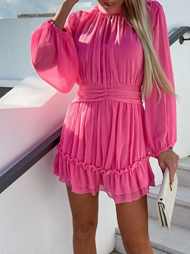 Women’s Work Dress Sheath Dress Chiffon Dress Fashion Winter Dress Office Daily Mini Dress Ruched Crew Neck Long Sleeve Stripe Plain Regular Fit Black White Purple Fall Winter S M L XL