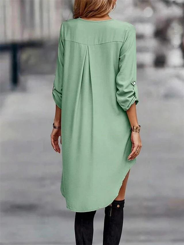 Women’s Work Dress Sheath Dress Semi Formal Dress Fashion Midi Dress Button Asymmetrical V Neck Long Sleeve Plain Regular Fit Green Fall Winter S M L XL XXL