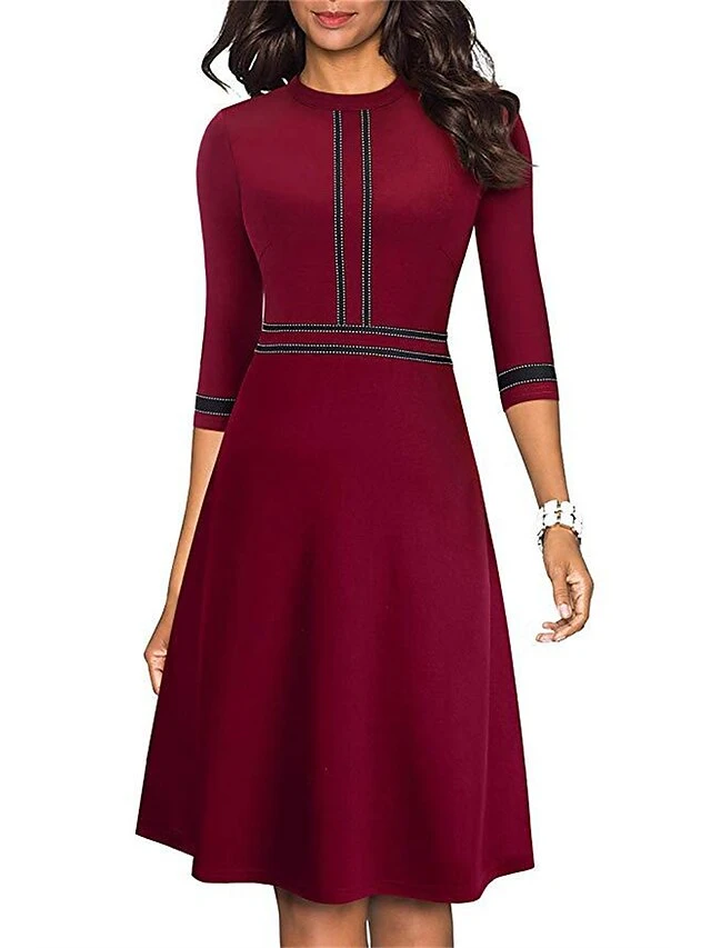 Women’s Work Dress Sheath Dress Semi Formal Dress Fashion Midi Dress Ruched Patchwork Crew Neck 3/4 Length Sleeve Color Block Regular Fit Black Wine Blue Fall Winter S M L XL XXL