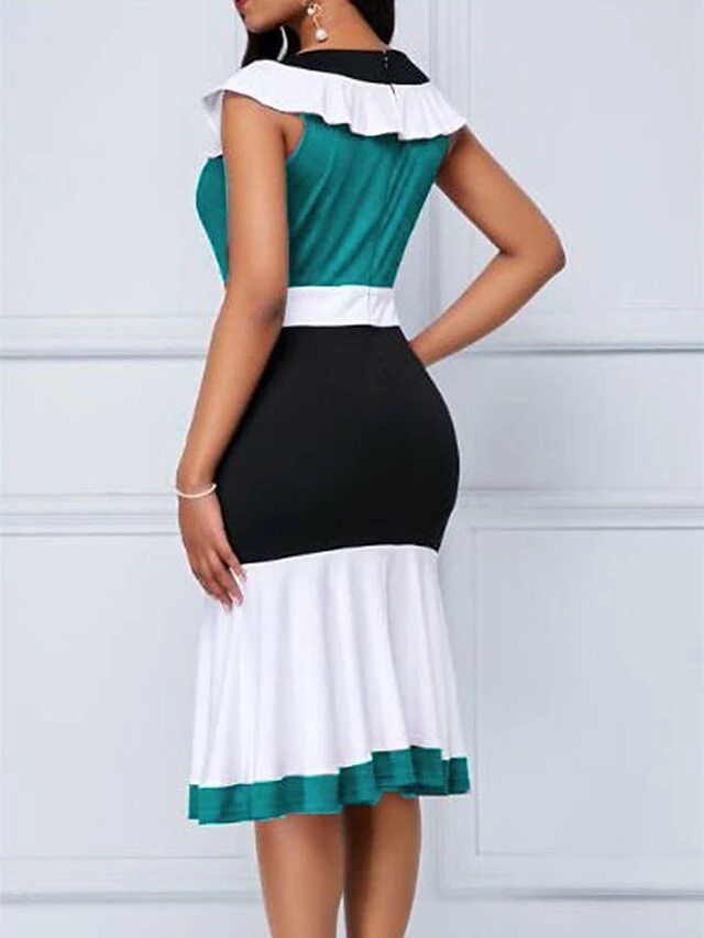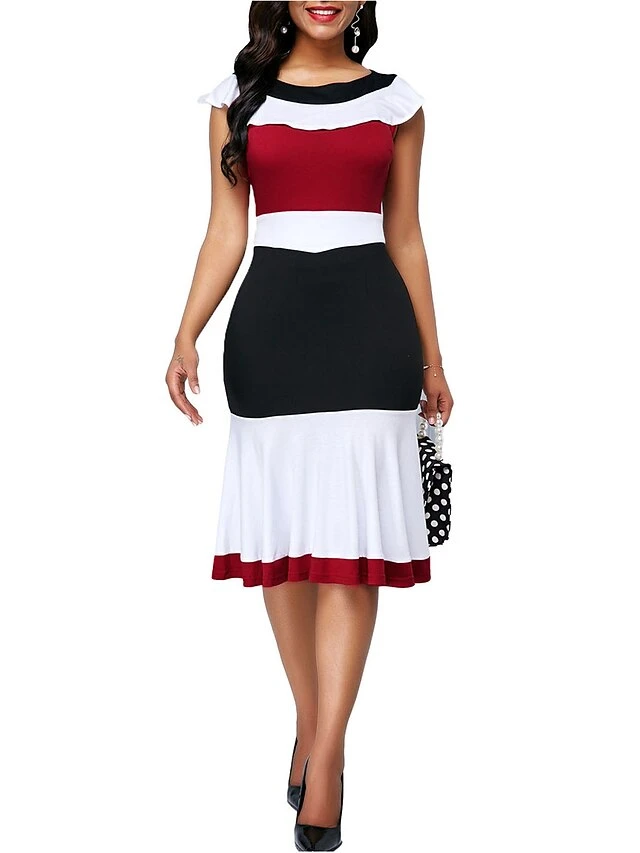 Women’s Work Dress Sheath Dress Semi Formal Dress Fashion Midi Dress Ruffle Print Crew Neck Sleeveless Print Regular Fit Red Blue Purple Summer Spring S M L XL XXL