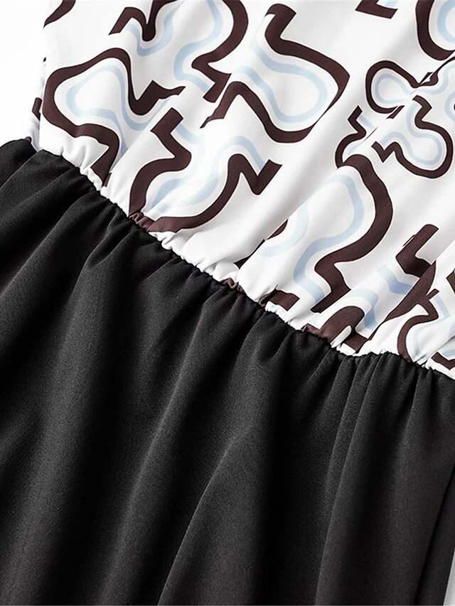 Women’s Work Dress Sheath Dress Semi Formal Dress Fashion Mini Dress Patchwork Print Crew Neck Long Sleeve Geometric Color Block Loose Fit Brown Khaki Gray Fall S M L XL XXL