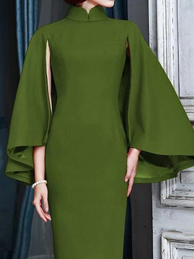 Women’s Work Dress Sheath Dress Semi Formal Dress Fashion Office Daily Midi Dress Split Stand Collar Long Sleeve Plain Regular Fit Blue Army Green Spring Fall S M L XL XXL