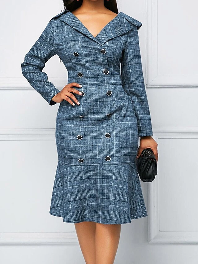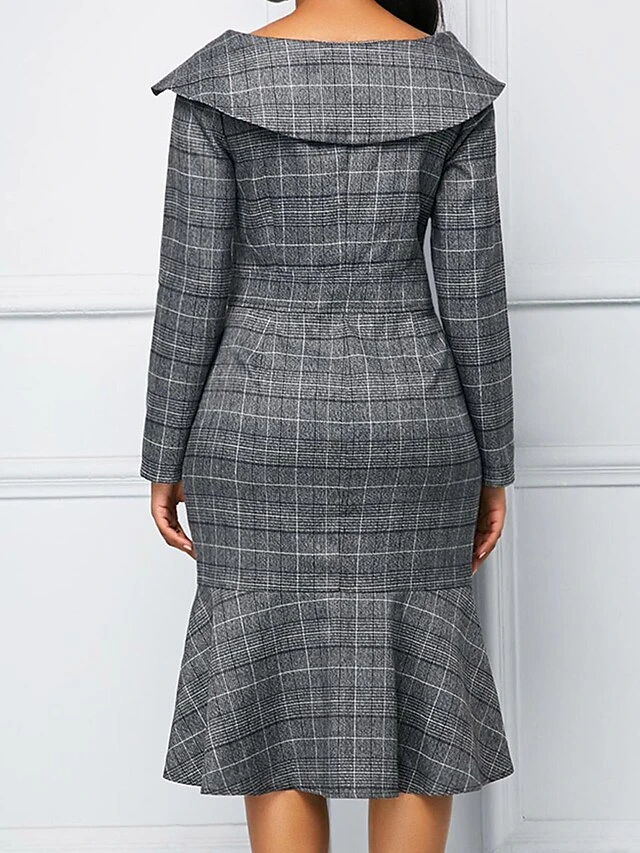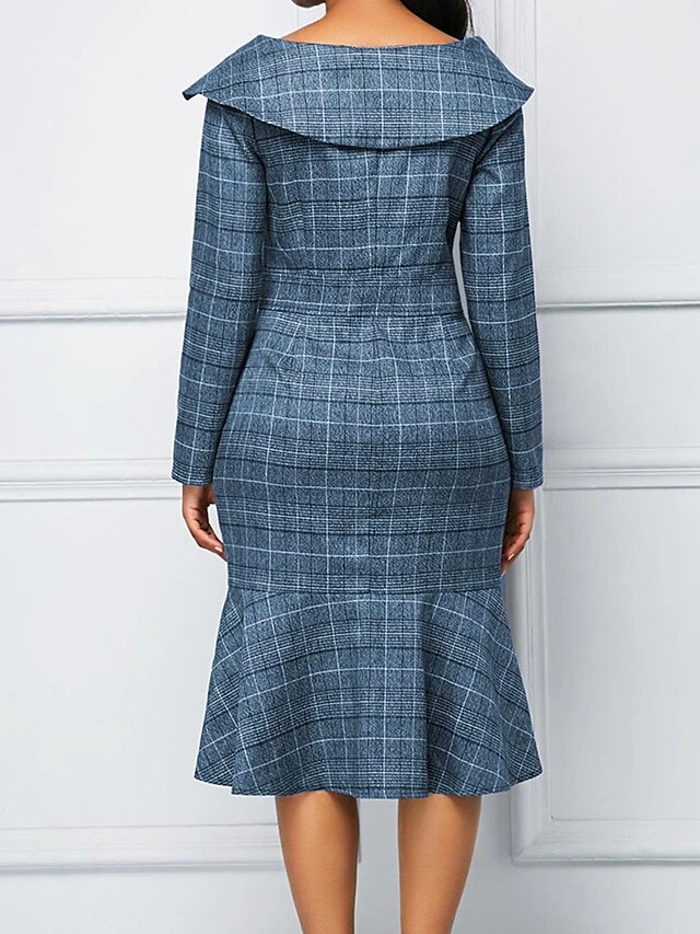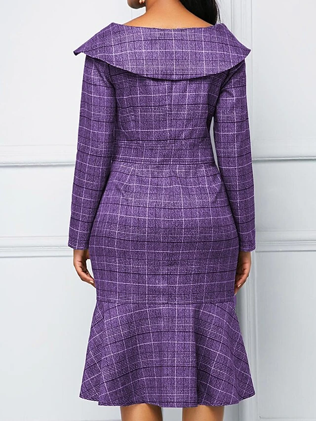 Women’s Work Dress Sheath Dress Semi Formal Dress Fashion Office Daily Workfashion Midi Dress Ruffle Button Shirt Collar Long Sleeve Plaid Regular Fit Blue Purple Gray Fall Winter S M L XL XXL
