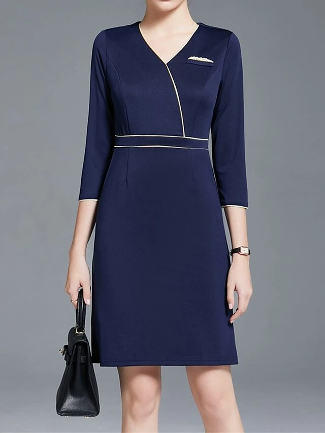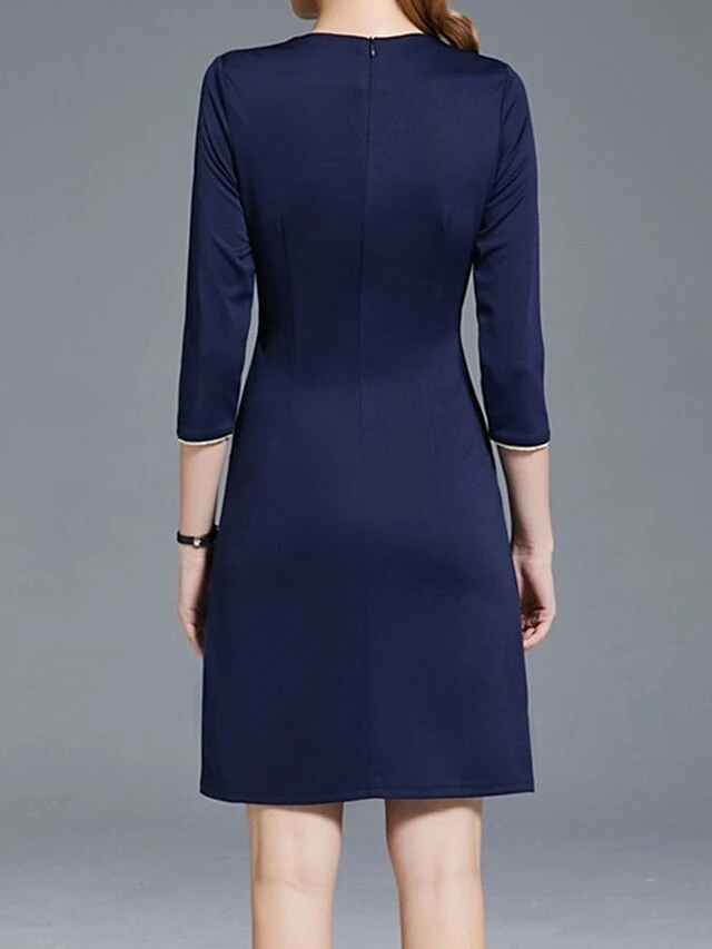 Women’s Work Dress Sheath Dress Semi Formal Dress Fashion Office Daily Workfashion Mini Dress Patchwork Zipper V Neck 3/4 Length Sleeve Plain Regular Fit Navy Blue Fall Winter S M L XL XXL