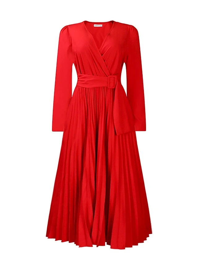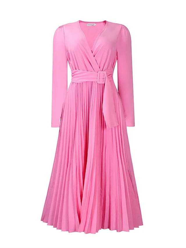 Women’s Work Dress Sheath Dress Swing Dress Fashion Winter Dress Office Daily Midi Dress Lace Up Pleated V Neck Long Sleeve Plain Regular Fit Black Yellow Pink Fall Winter S M L XL XXL