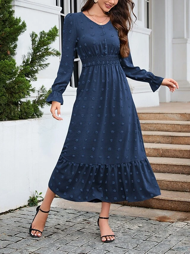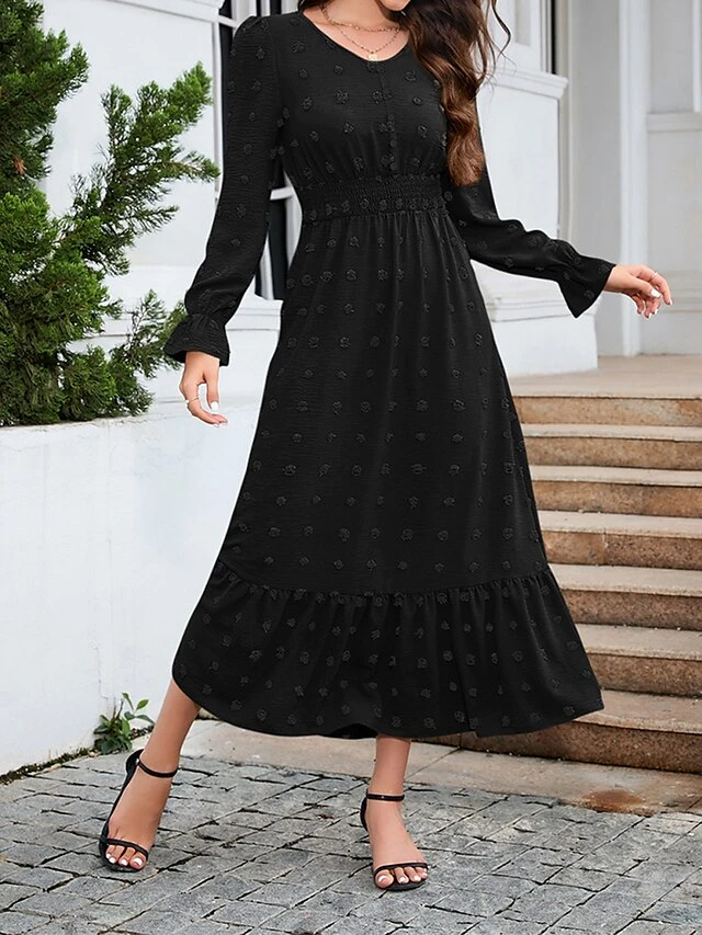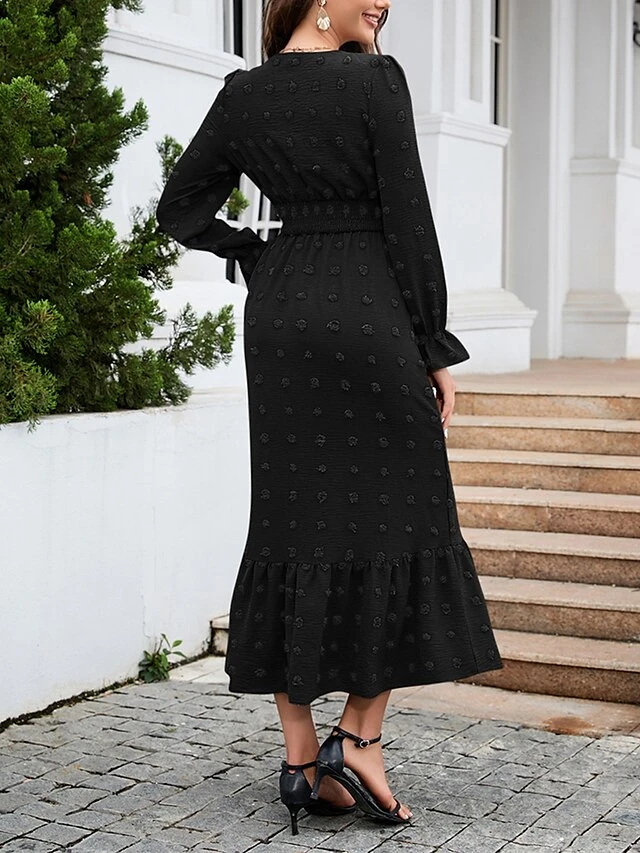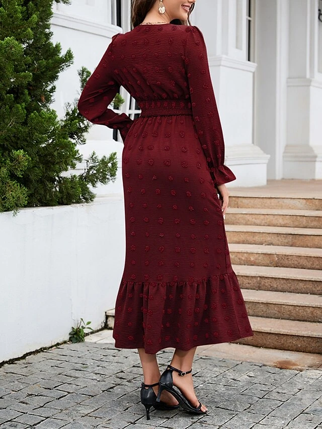 Women’s Work Dress Swing Dress Black Dress Fashion Midi Dress Ruched V Neck Long Sleeve Plain Loose Fit Black Red Blue Fall Winter S M L XL XXL