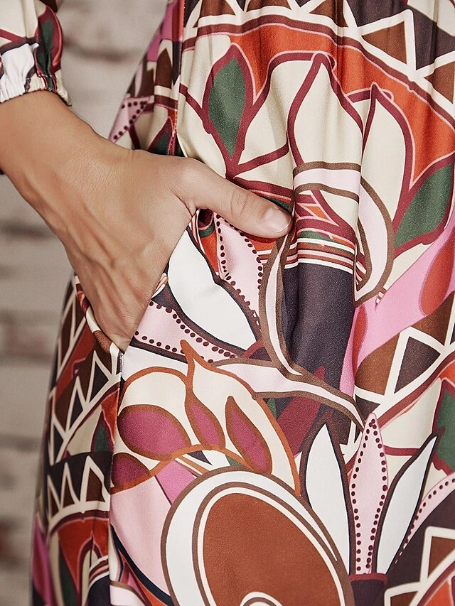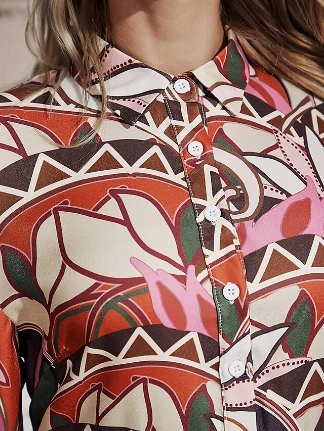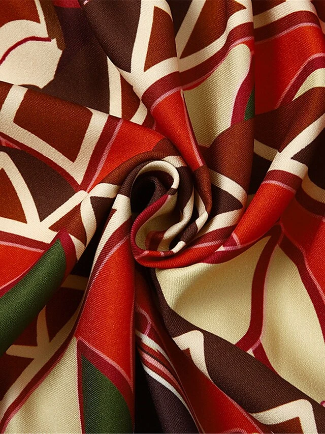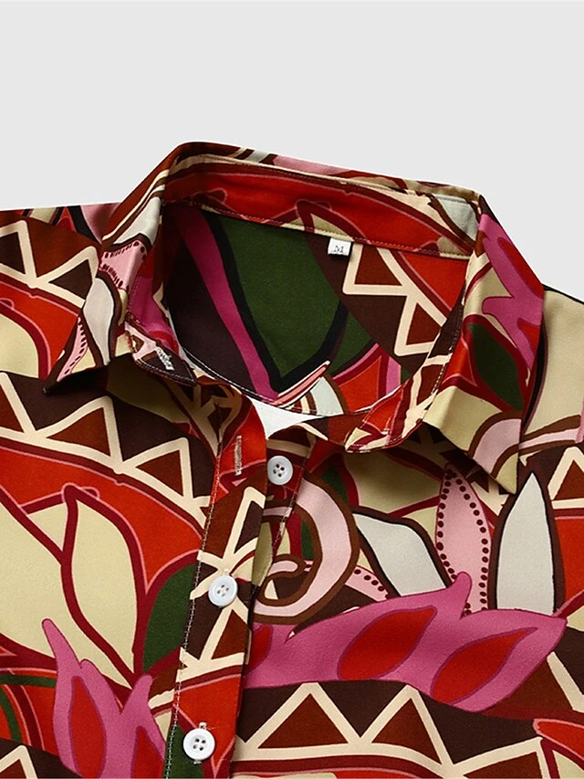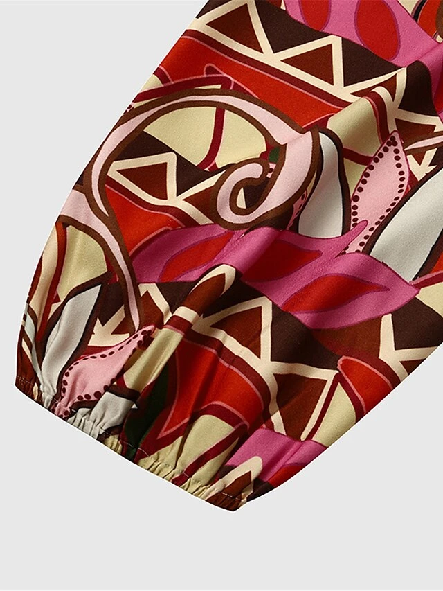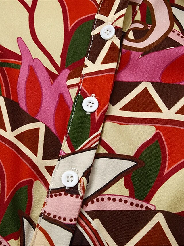 Women’s Work Dress Swing Dress Semi Formal Dress Fashion Long Dress Maxi Dress Button Print Shirt Collar Long Sleeve Geometric Color Block Loose Fit Red Fall Winter S M L XL XXL